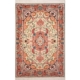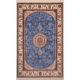 silk carpet has a rich red field and navy border. The accents are in lighter
