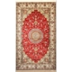 medallion on this all-silk carpet anchors the design, gives the floral pattern